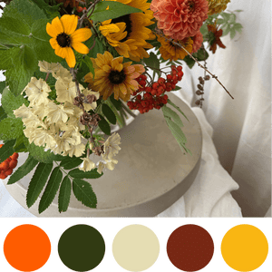 The Autumn Fields Vase arrangement is designed in a simple glass vase in daydreamy Bloomfields style. Our designers' selection of blooms, accents, and foliage in light and drifty hues of vintage yellow, and orange is a classic choice for all occasions.
