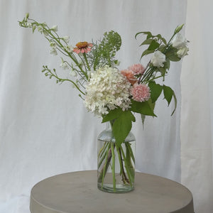 Simple and striking. The Poetic Blush bottle arrangement features a cheerful seasonal mix of blooms and accents. A perfect choice to add a seasonal flare to your home or to gift a loved one.