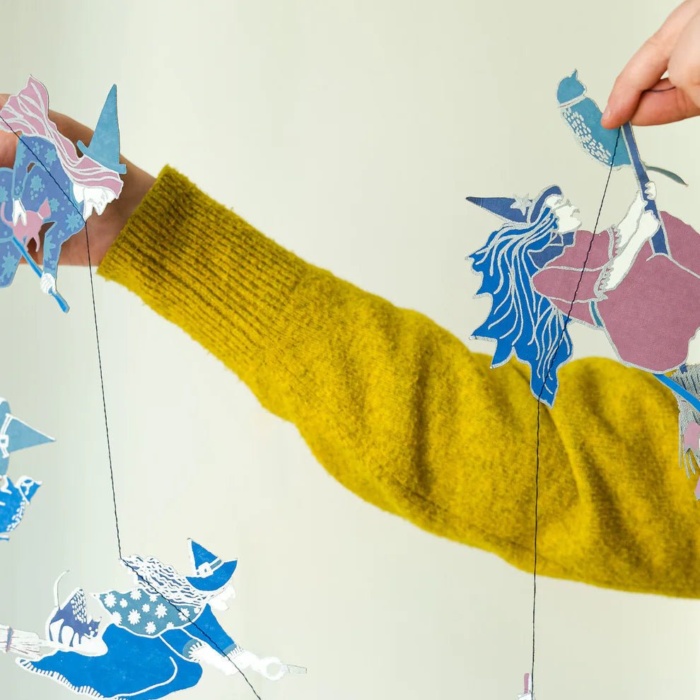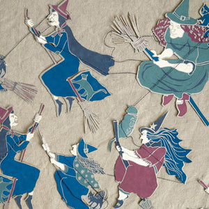 Fire burn and cauldron bubble as ten very wicked witches and their feline friends fly along the length of this three metre garland.