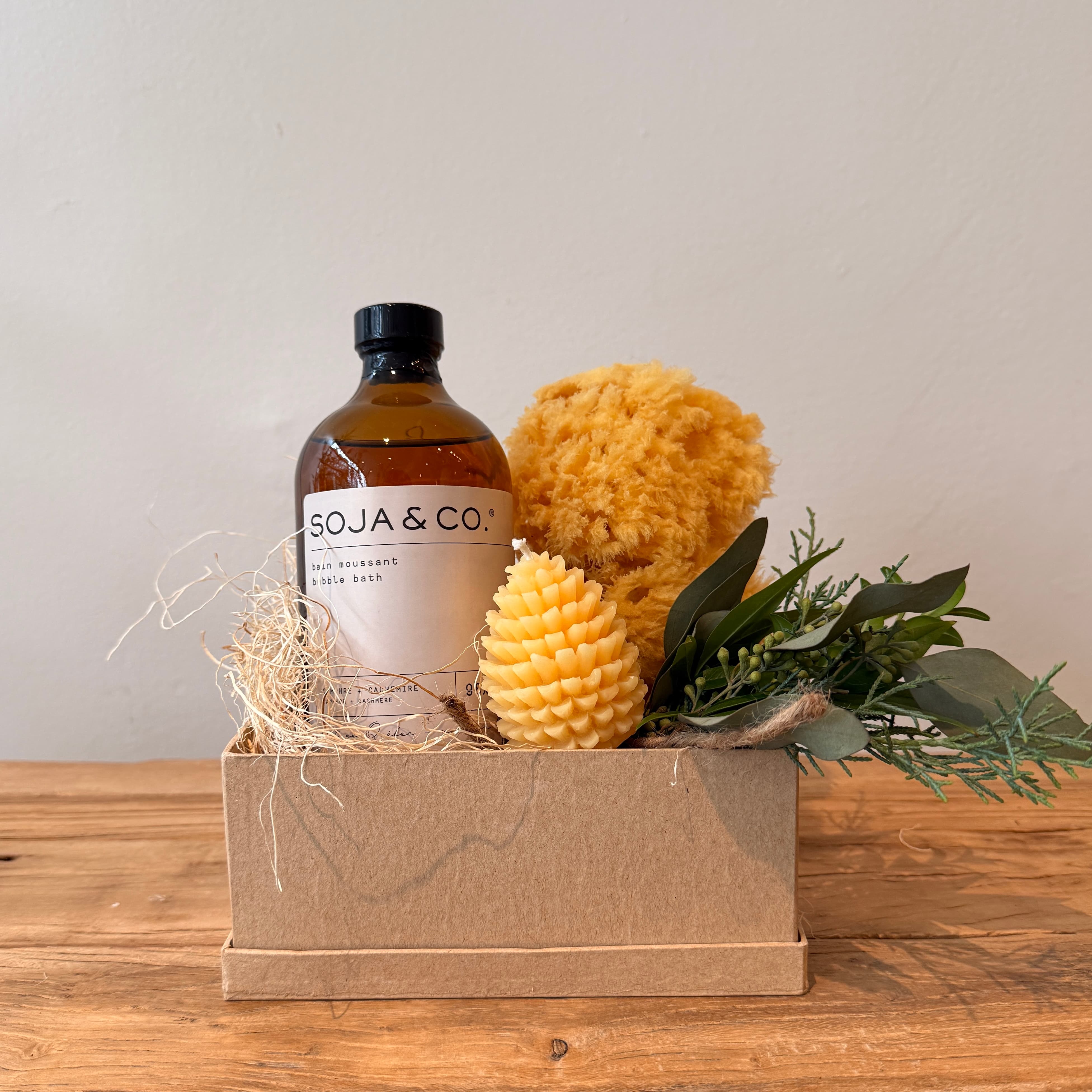 A compact, soothing bath experience. This set combines gentle bubble bath, a natural sea sponge, and a handcrafted beeswax candle — a small but meaningful way to bring calm into everyday life.