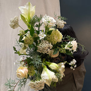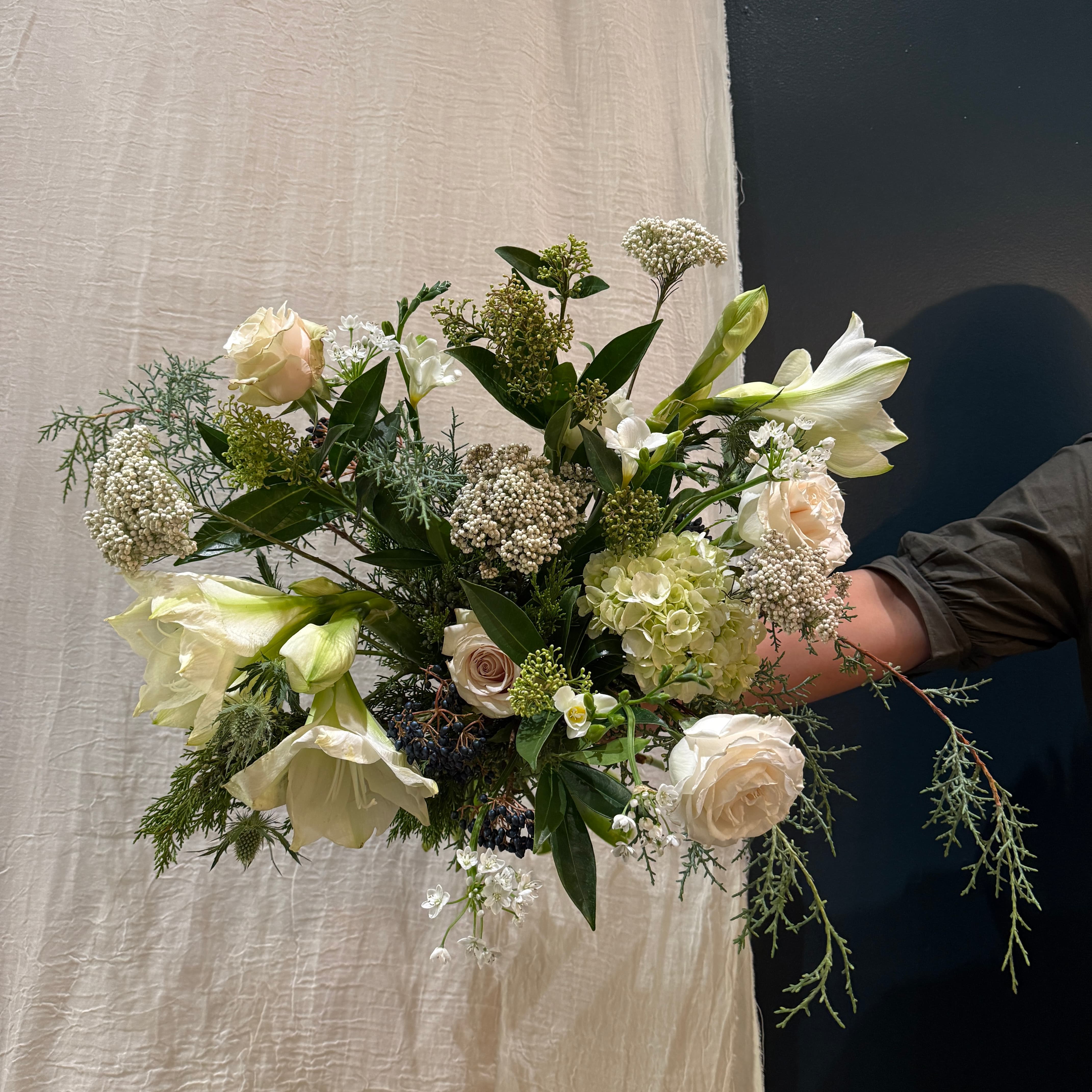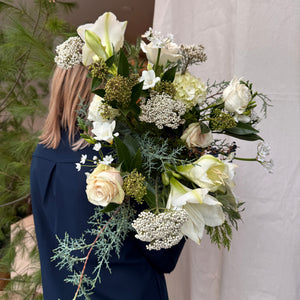 Composed of refined seasonal blooms, amaryllis, roses, and delicate textural greens, Snowlit Moon captures the quiet radiance of a winter evening — fresh, luminous, and gracefully modern. A thoughtful gift for all occasions.