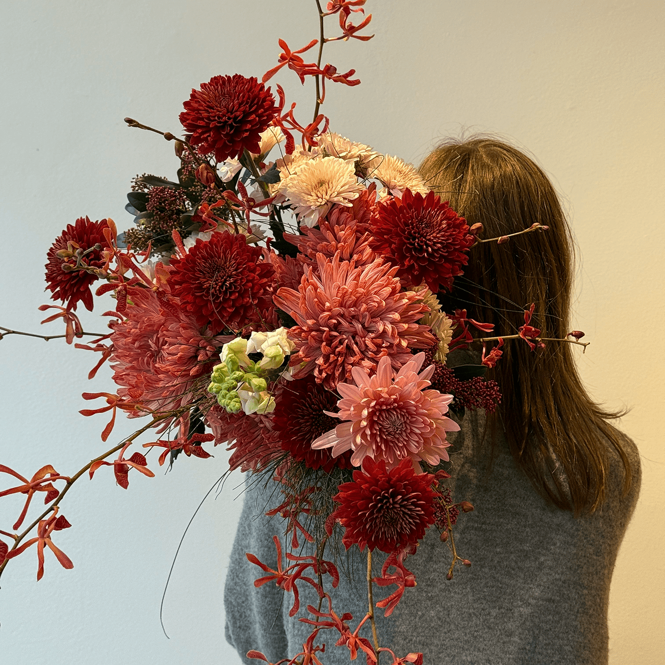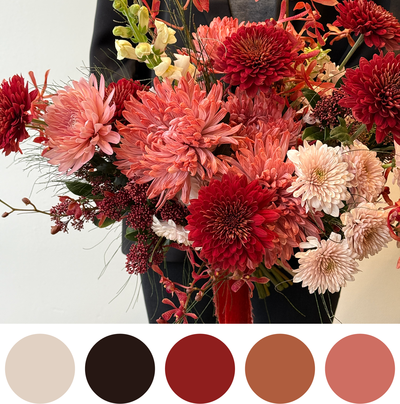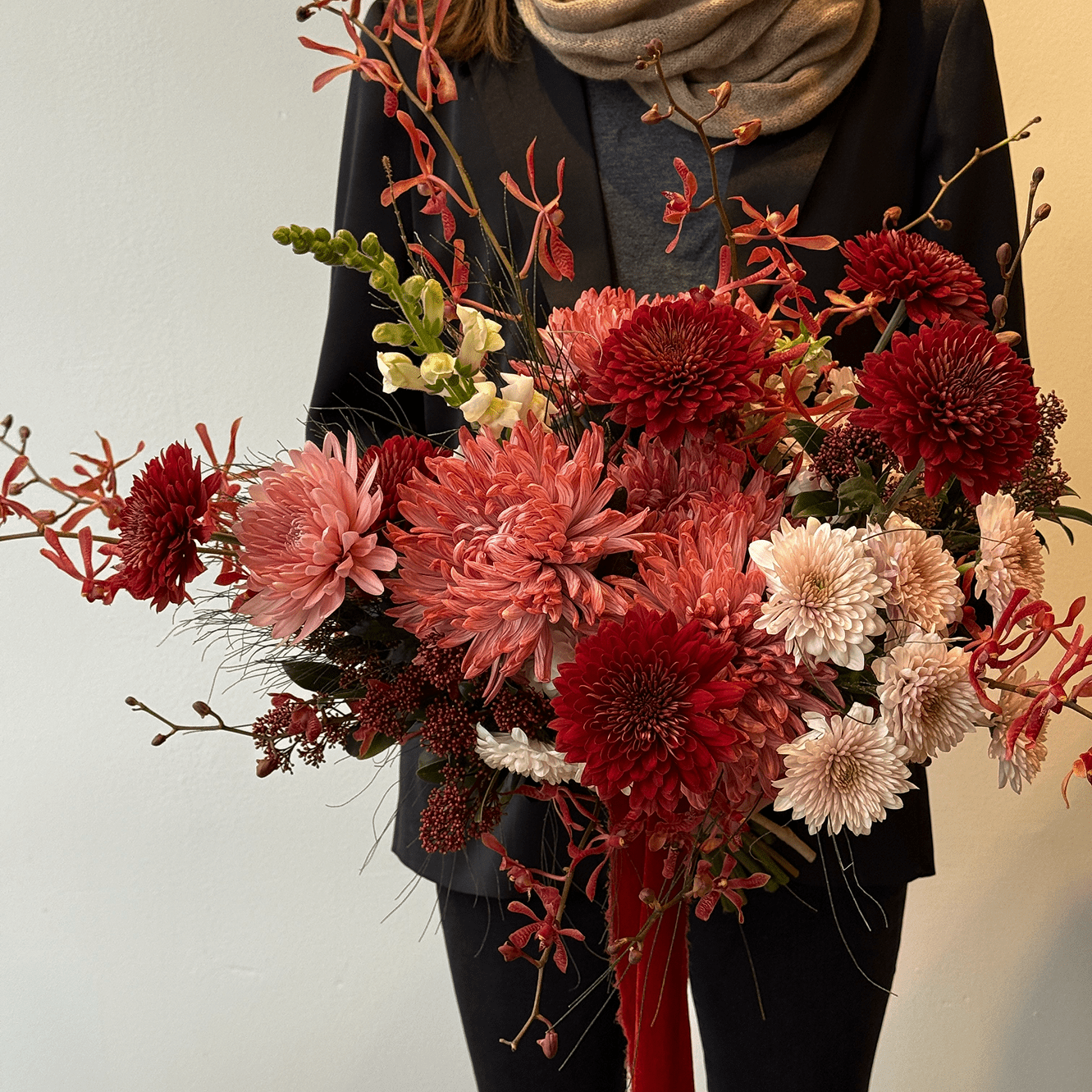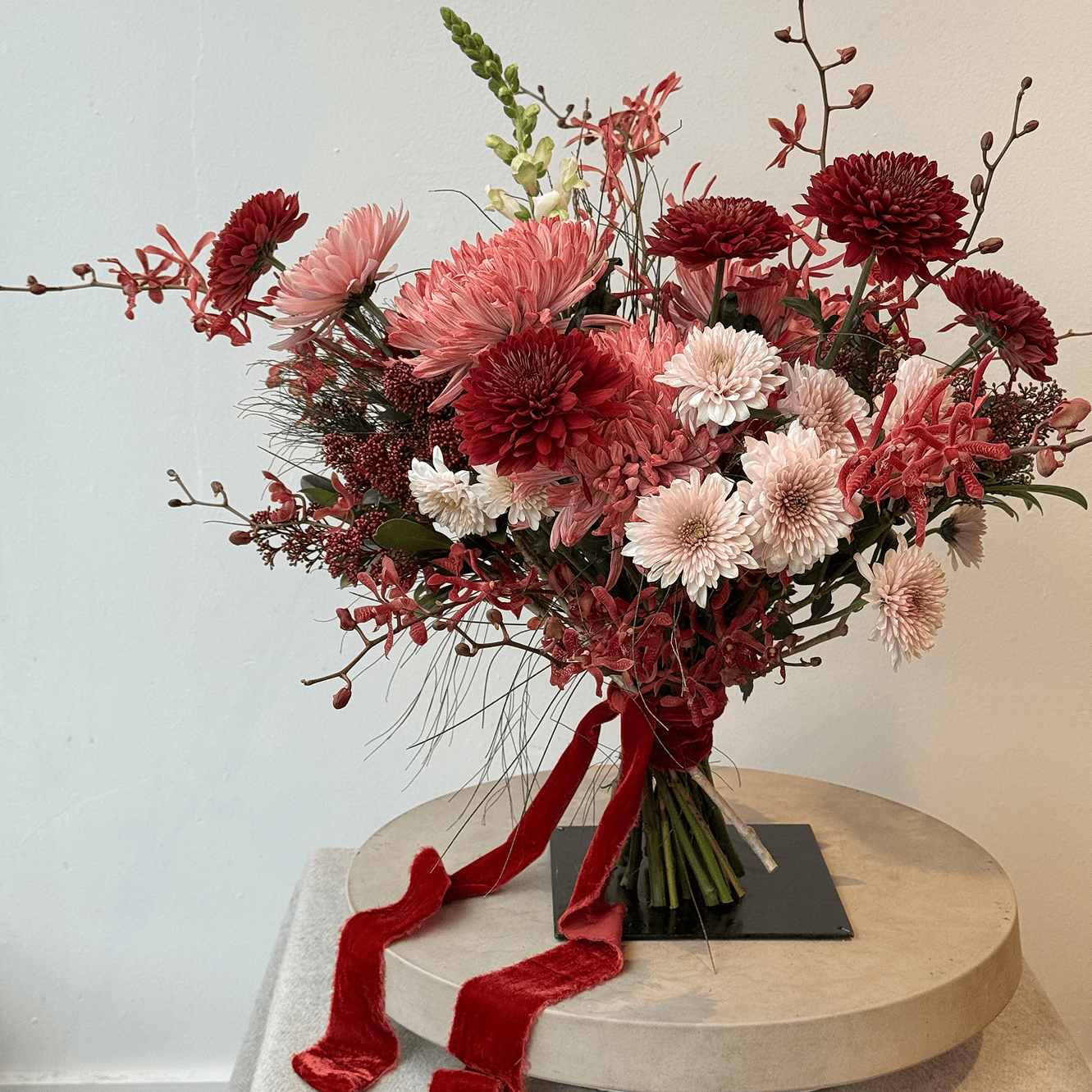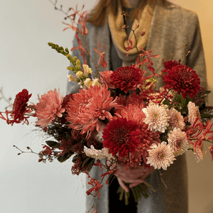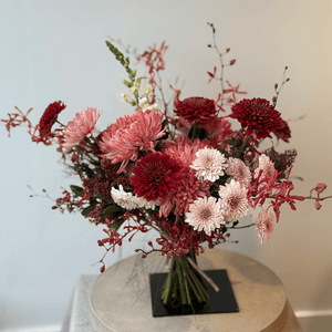 A lush, expressive bouquet in rich shades of crimson, blush, and soft rose. Crimson Devotion speaks the language of deep feelings — passion, tenderness, and quiet intimacy. Designed to feel bold yet refined, this arrangement is perfect for celebrating love that is confident, warm, and unmistakably real.
