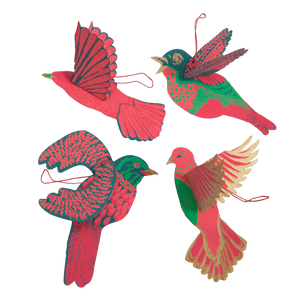 With four dazing, jewel coloured birds, this set of paper decorations is inspired by colourful festive ornaments of years past.