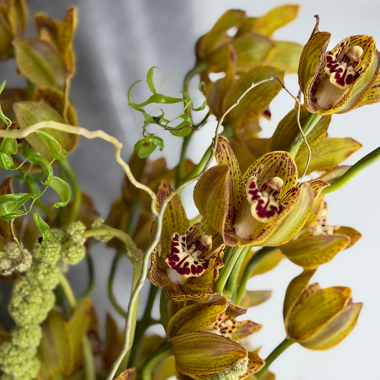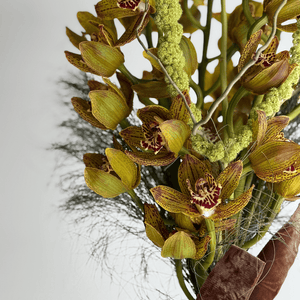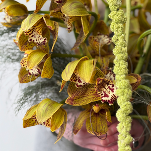 A striking bouquet built around exotic golden orchids and sculptural green textures. Golden Instinct is bold, sensual, and unapologetically expressive — a celebration of attraction that feels raw and magnetic. Designed for those who follow feeling over convention, this arrangement makes a powerful and unforgettable statement.