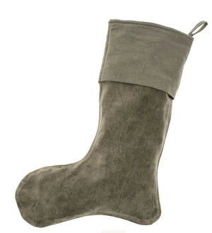 Elevate your holiday decor with the timeless Velvet Stocking. Crafted from stone-washed velvet and complemented by a matching stone-washed cotton cuff, these stockings are stylish and versatile – hang them from the mantel, the end of the bed, stair rail, or shelving. They are ready to be filled with gifts and to become a cherished part of your festive memories year after year.
